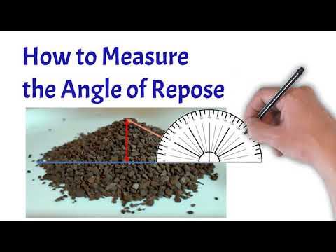 H is the height. The morphology of the material affects the angle of repose. A atan hr Where a is the angle of repose.